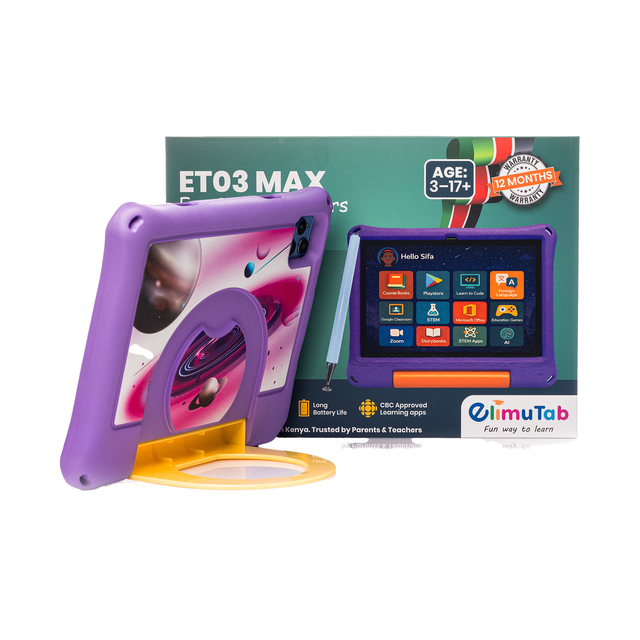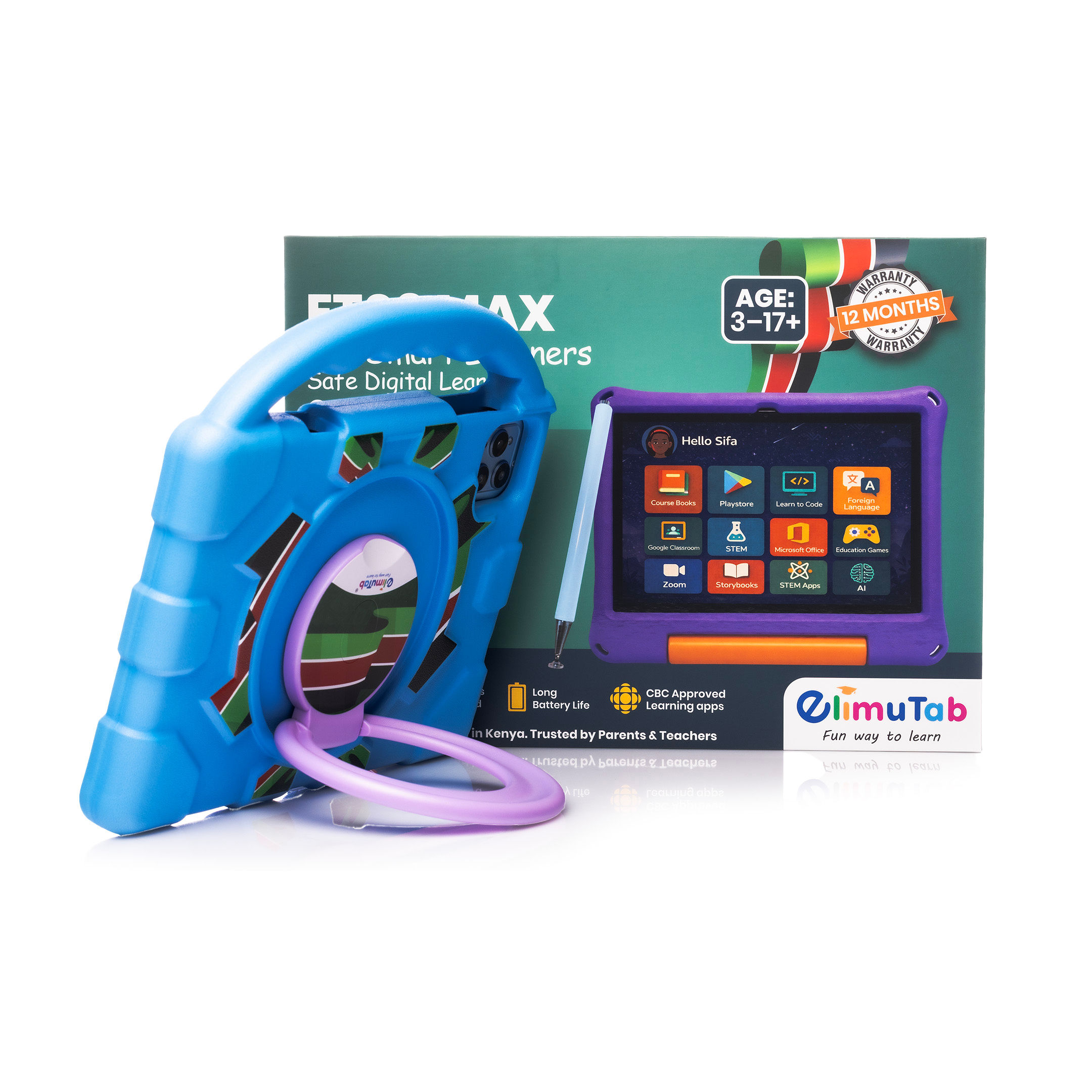 Built with a shock-resistant protective foam casing, it is durable enough for everyday student use while providing access to CBC-aligned learning resources from Grade 1 to Form 4.